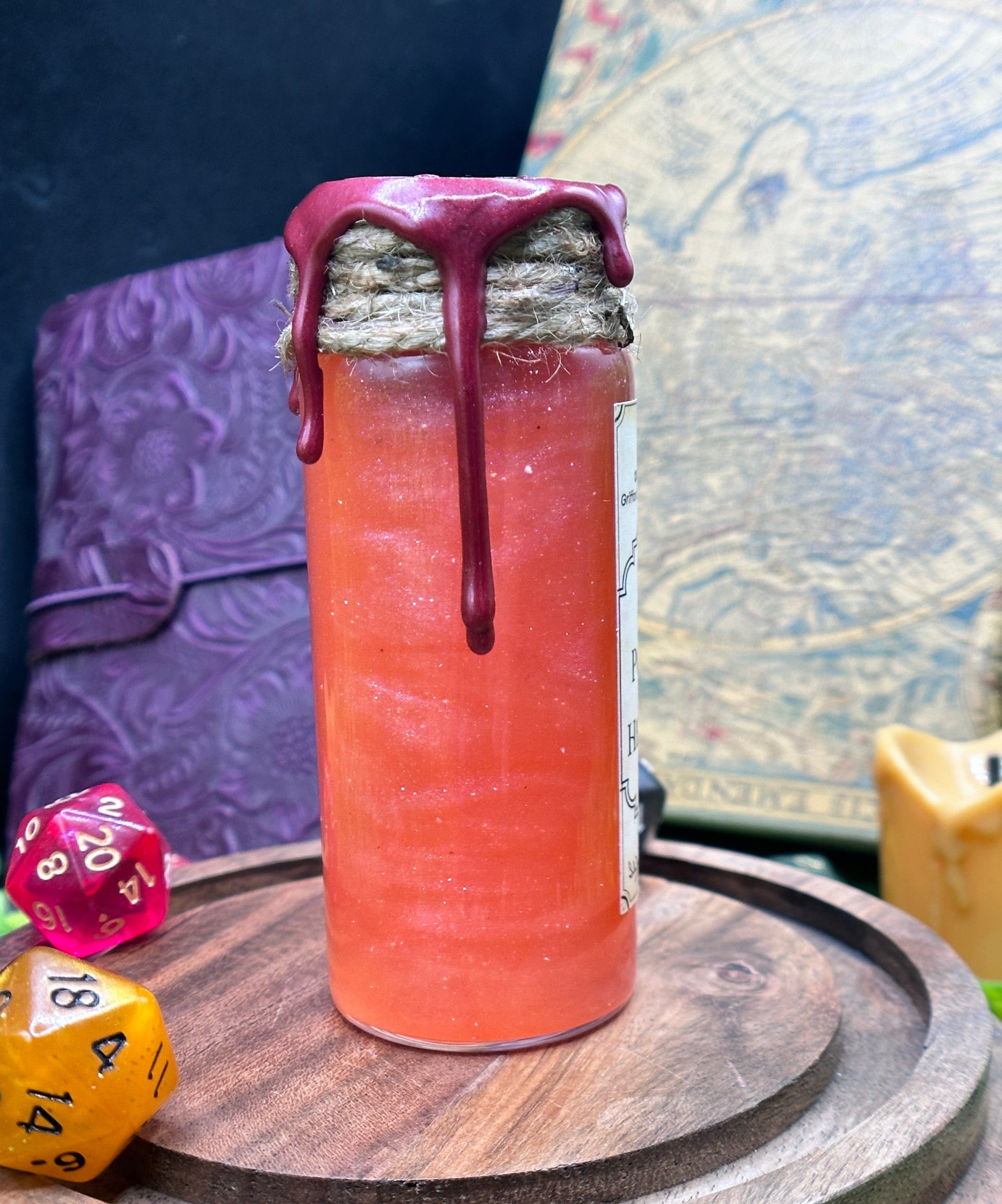 Hidden inside each potion bottle resides a single fate-telling D20. Give the bottle a shake and behold the magical transformation as the transparent potion evolves into a captivating, iridescent elixir. Turn the bottle upside down and see the die float through the mist, revealing your roll!