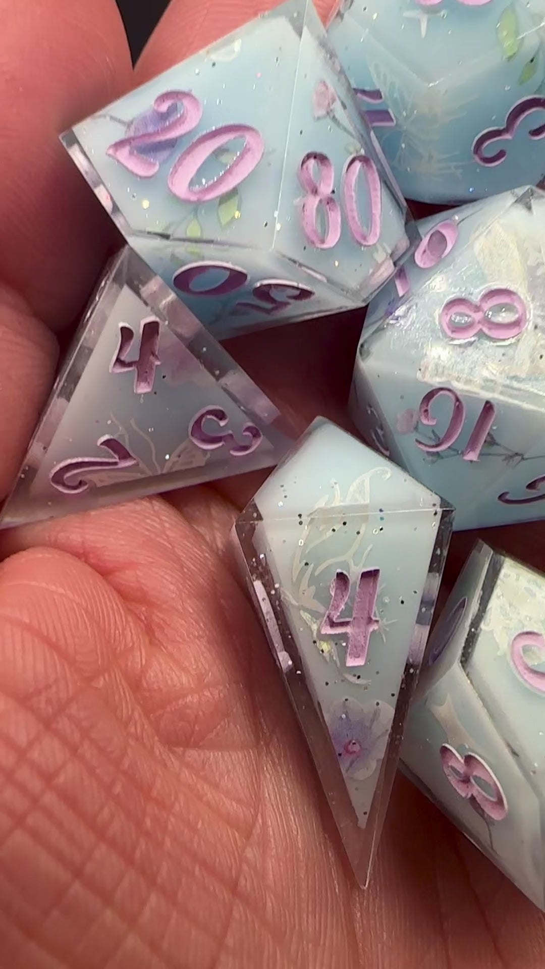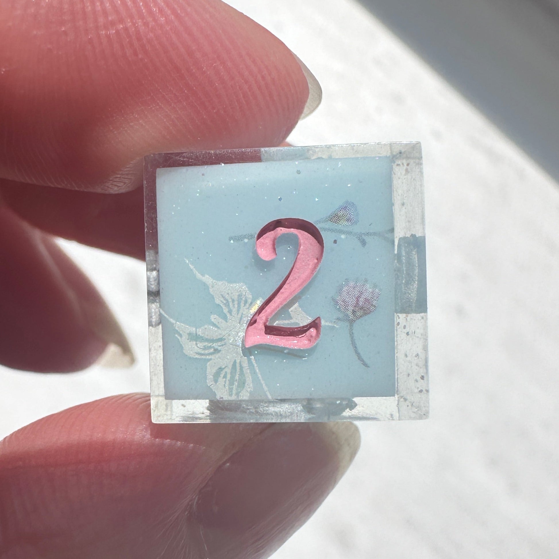 Choose which color you want your dice set inked in; lilac, rose gold, or pink.
